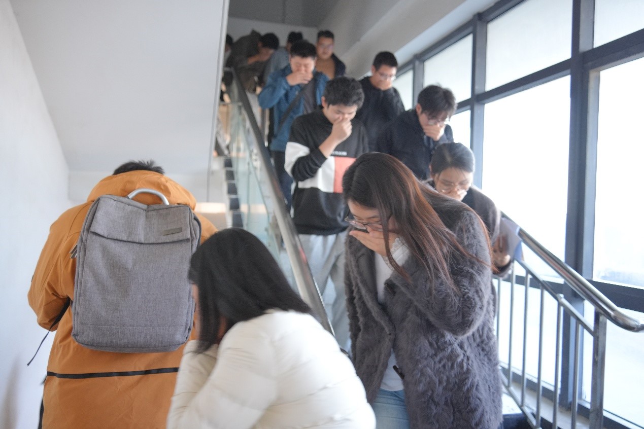 11月13日15:30,随着模拟火灾烟雾弹点燃,石油科技大楼消防实战演习正式拉开帷幕。本次演习模拟“某实验室因操作不当引发火灾”场景,涉及石油科技大楼各学院共500名师生,分为指挥组、疏散引导组、灭火行动组、安全救护组等6个专项小组,分工明确、协同作战。