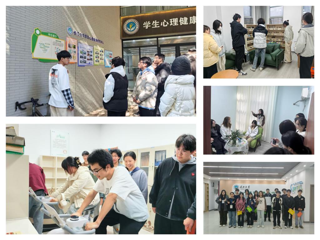 在蒲公英之家朋辈志愿者的带领和讲解下,校区各学院同学分场次有序参观心理健康教育中心,了解中心基本情况和服务项目,并体验宣泄仪、动感单车等放松设备。