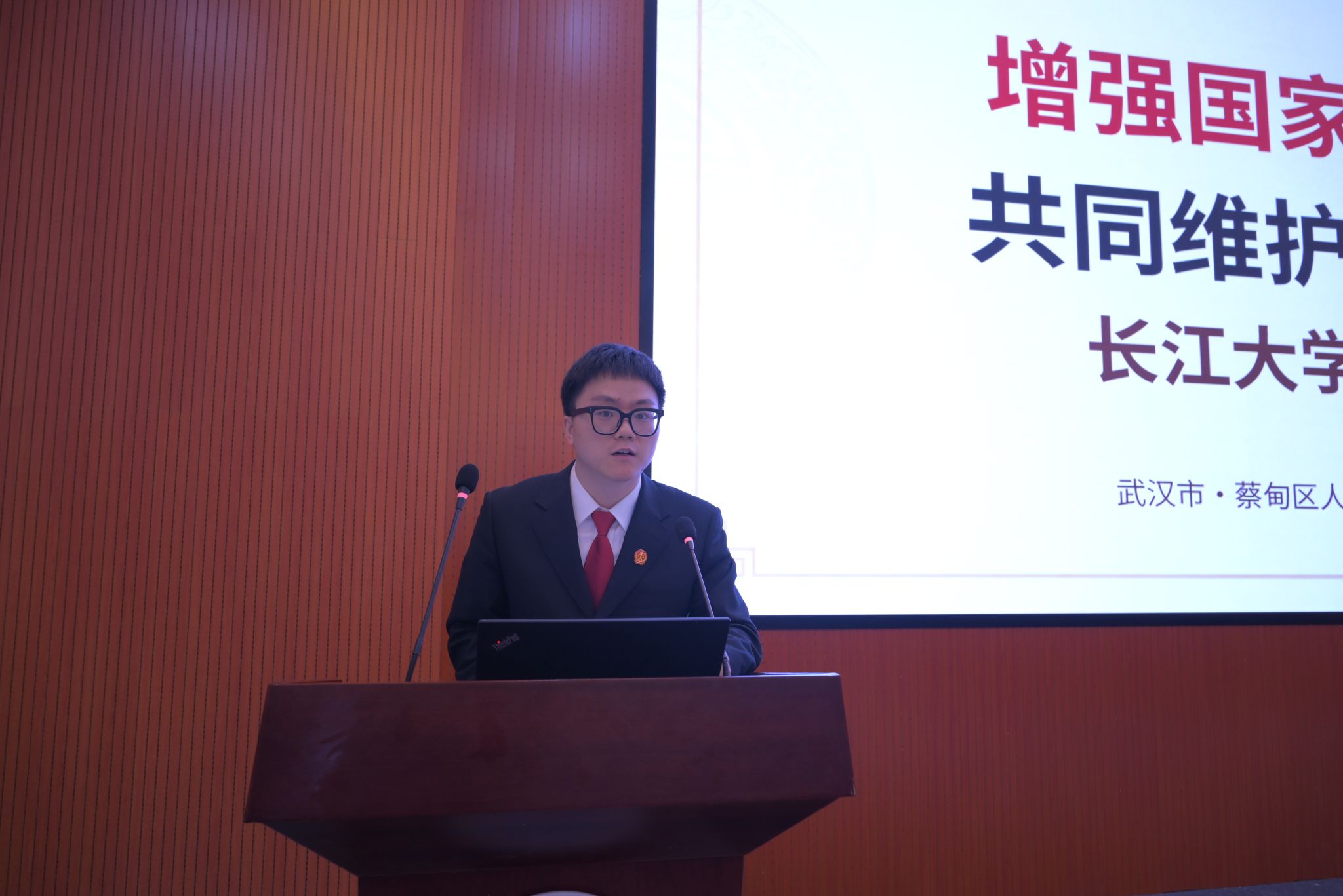 (通讯员 荆鑫/文 李莹/摄)为深入贯彻总体国家安全观,增强大学生国家安全意识,在第十一个全民国家安全教育日来临之际,武汉校区管委会于4月9日下午在就业宣讲厅举行了一场“全民国家安全教育日”专题讲座,蔡甸区人民法院法官曹银波受邀主讲,来自校区各学院的160余名师生代表参加活动。