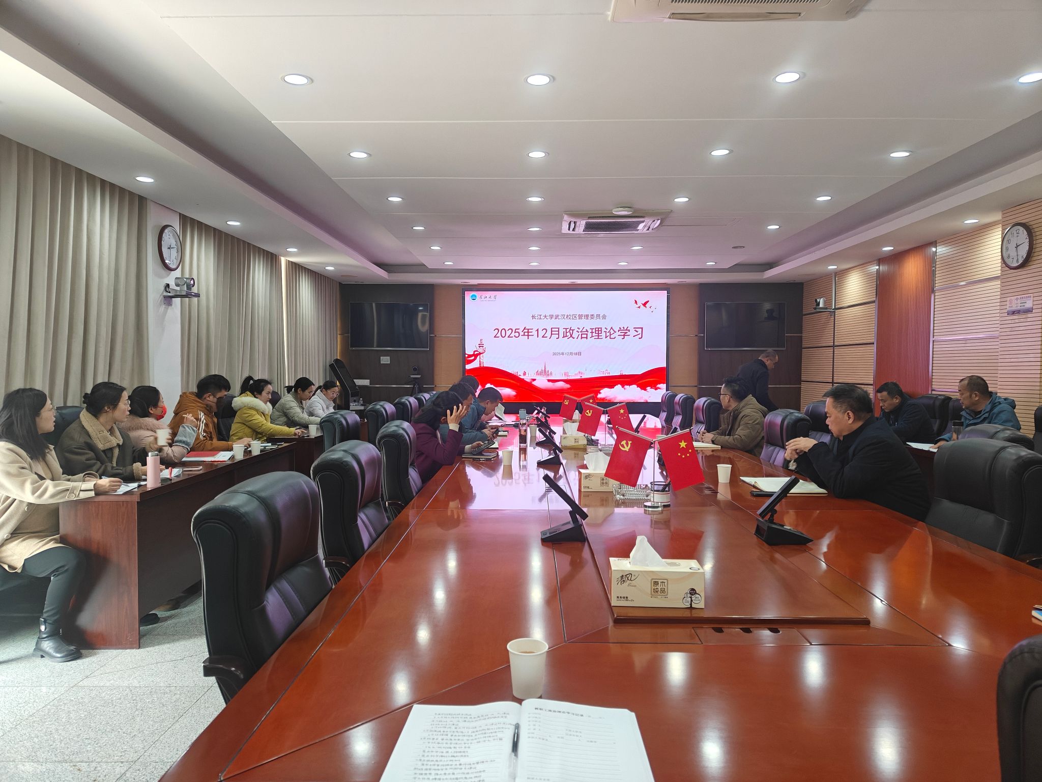 12月17日下午,武汉校区党工委在二楼会议室组织开展12月份政治理论学习暨理论学习中心组学习会,武汉校区管理委员会、基础课及延伸机构教职工参加会议。会议由武汉校区党工委书记崔青山主持。